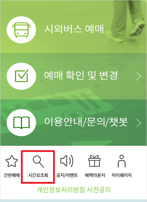 ■ 모바일 앱 : 시외버스터미널 시간표 조회 방법