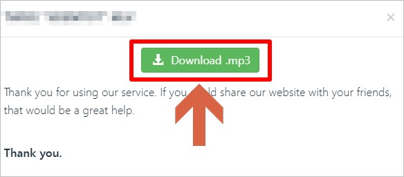 5. 다운로드 버튼을 누르면 아래와 같이 유튜브 mp3 변환 다운로드 창이 활성화 되고, Download.mp3 버튼을 클릭하면 파일 저장이 완료됩니다.