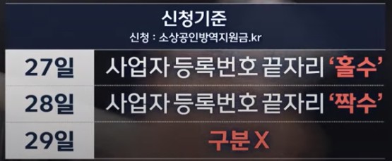 소상공인 방역지원금은 영업제한에 관계없이 매출 하락이 발생한 소기업에 속하는 업체라면 누구나 신청 가능합니다. 지원금 신청의 경우 27일부터 이틀간 홀짝제로 시행되며 29일부터 사업자 번호와 관계없이 신청 가능합니다.