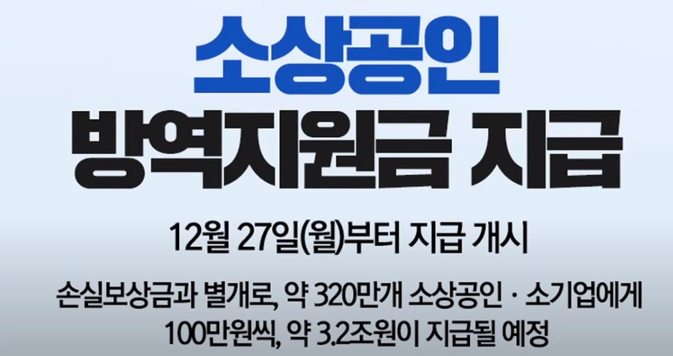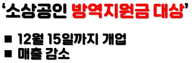 1) 12월 27일부터 방역지원금이 당일 지급 : 영업시간에 제한을 받은 업체