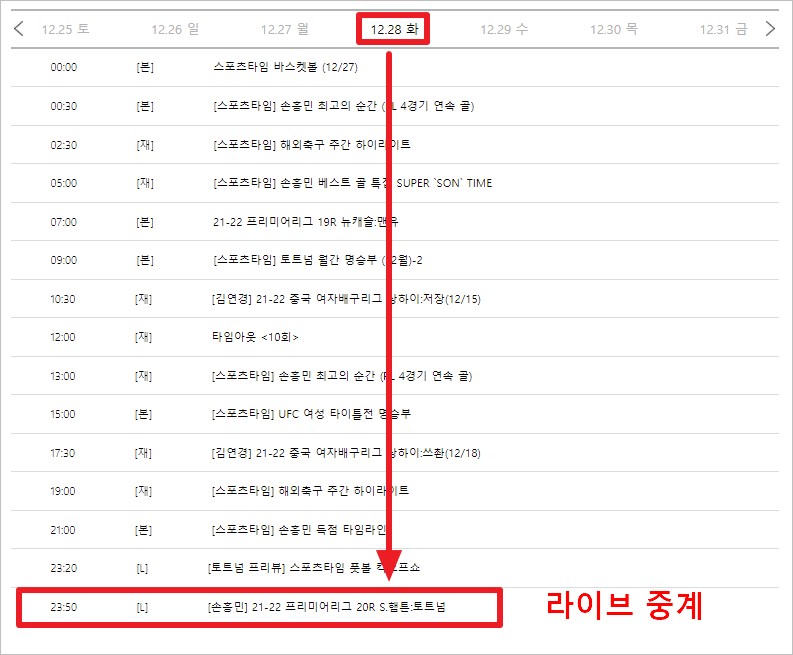 | 손흥민 경기일정 토트넘 리버풀 실시간 중계 방송(TV/인터넷) (0) | 2021.12.19 |