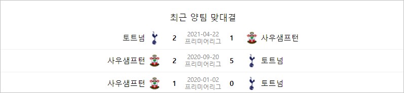 최근 진행된 토트넘과 사우스햄튼 3경기를 살펴보면 2승 1패로 토트넘이 좋은 모습을 보이고 있고, 특히 최근 2경기를 모두 토트넘이 가져가면서 이번 경기도 토트넘의 우세가 예상되는 가운데 마지막 맞 대결인 지난 4월 22일 경기에서도 손흥민 선수의 역전골로 승리한 좋은 기억이 있습니다.