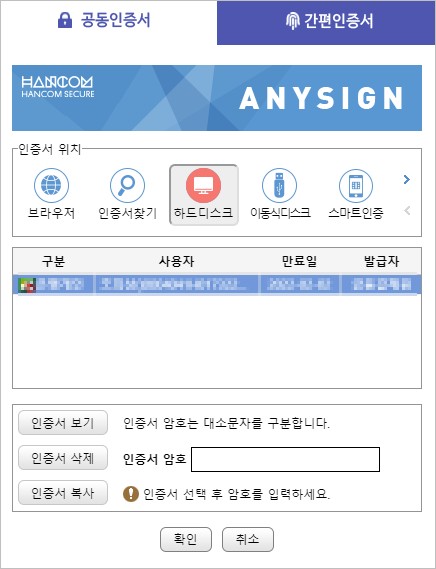 7. 마지막으로 공인인증서나 간편 인증서로 인증을 해줍니다.
