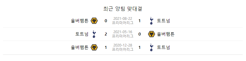 양팀 최근 맞대결에서는 토트넘이 2승 1무로 앞서있는 상황입니다. 하지만 울버햄튼의 경우는 홈보다는 원정경기에서매우 강한 모습을 보이고 있기 때문에 토트넘의 승리를 낙관할수는 없는 상황입니다.