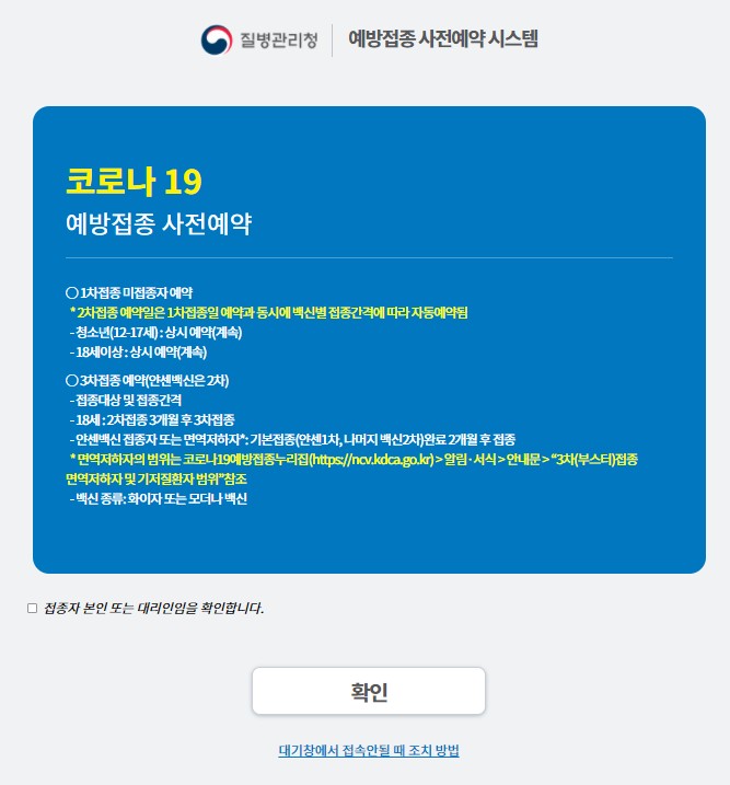 4차 백신 예약은 코로나 사전예약 홈페이지에서 가능하며, 접종자 본인 또는 대리인도 예약을 할 수 있습니다. 예약을 하기 위해서 아래의 본인 인증서를 미리 준비해야 백신 예약을 더욱 빨리 하실 수 있습니다.