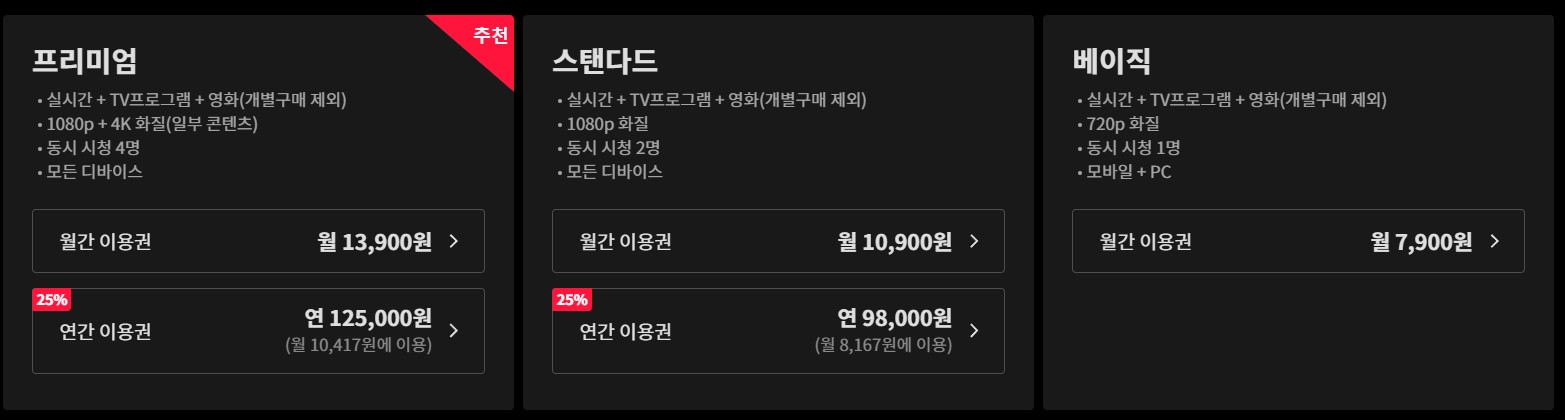 티빙의 경우 유료서비스 인데 무료로 시청할 경우 지원되는 최대 화질은 720P 화질이며 스탠다드나 프리미어 서비스를 이용할 경우 1080P FHD나 4K로 시청이 가능합니다.