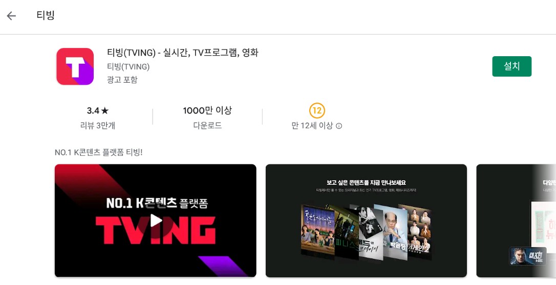 안드로이드 및 IOS 폰으로도 티빙 무료 온에어 시청이 가능한데 '구글 플레이어'나 '애플스토어'에서 [티빙] 검색 후 앱을 다운로드하여 설치한 후 PC와 마찬가지로 네이버, 카카오톡, 페이스북 등의 SNS 계정으로 로그인해 줍니다.