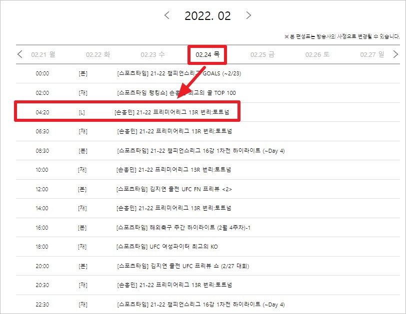 | 손흥민 경기 생중계 프리미어리그 24라운드 경기 (0) | 2022.02.09 |