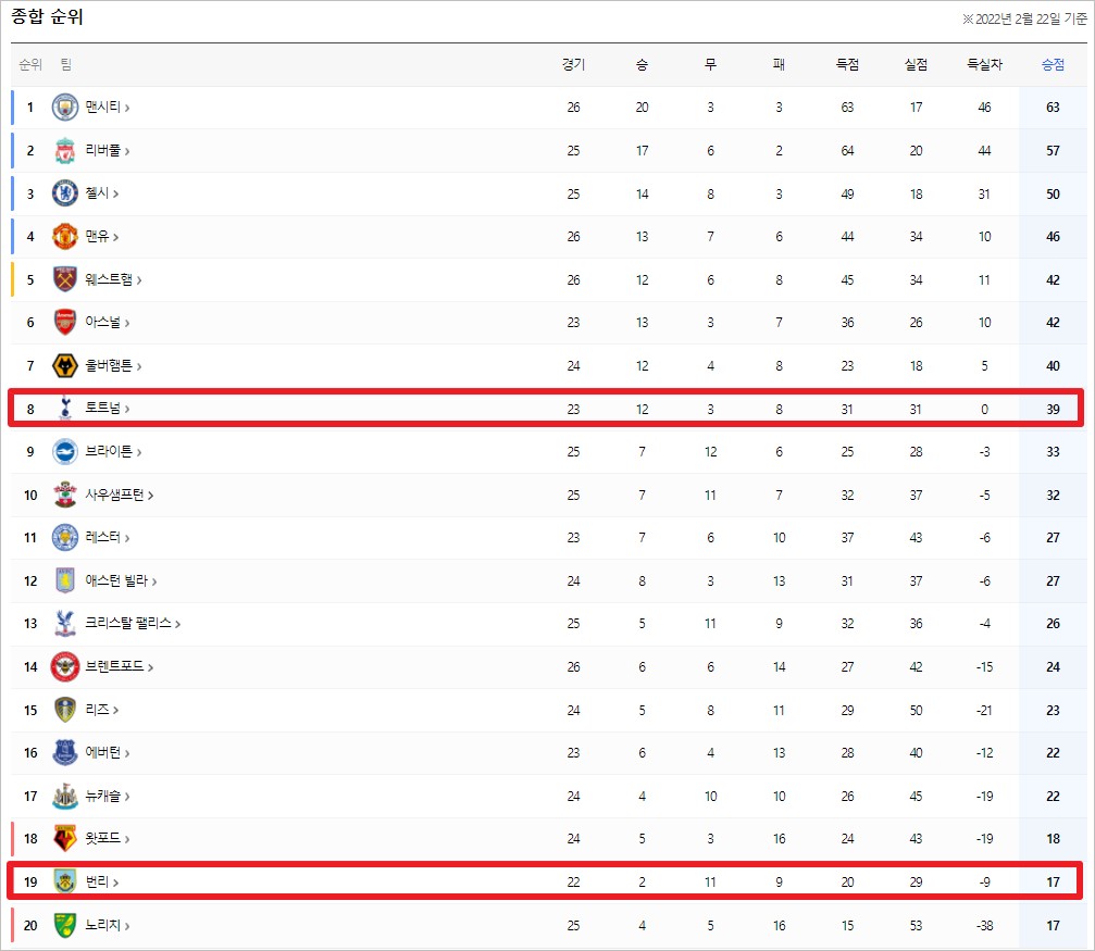 | 토트넘 경기일정 손흥민 선발 프리미어리그 26R 맨시티전 (0) | 2022.02.19 |