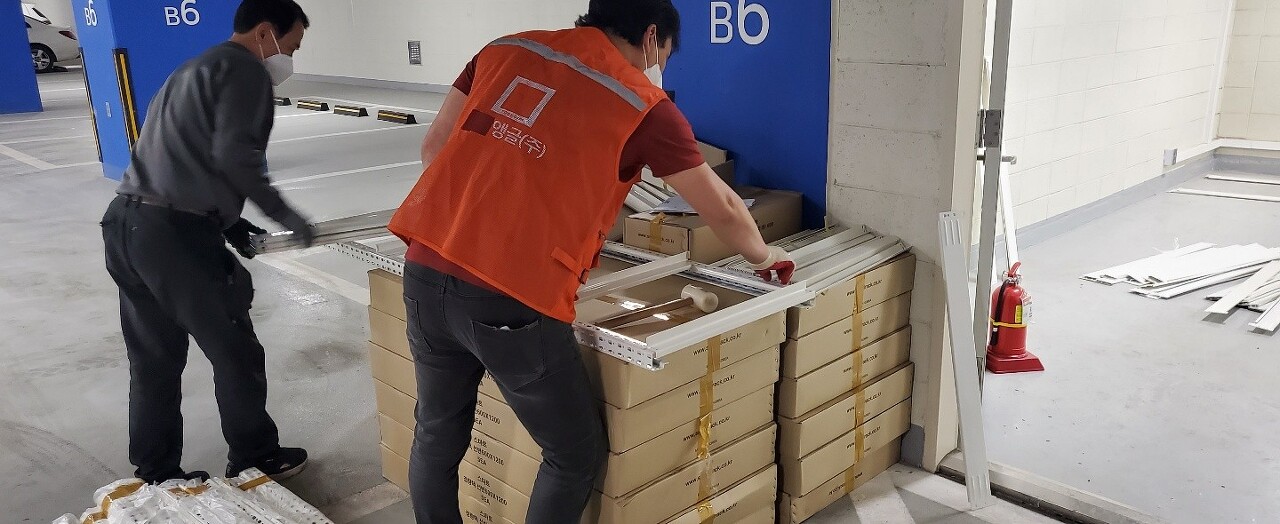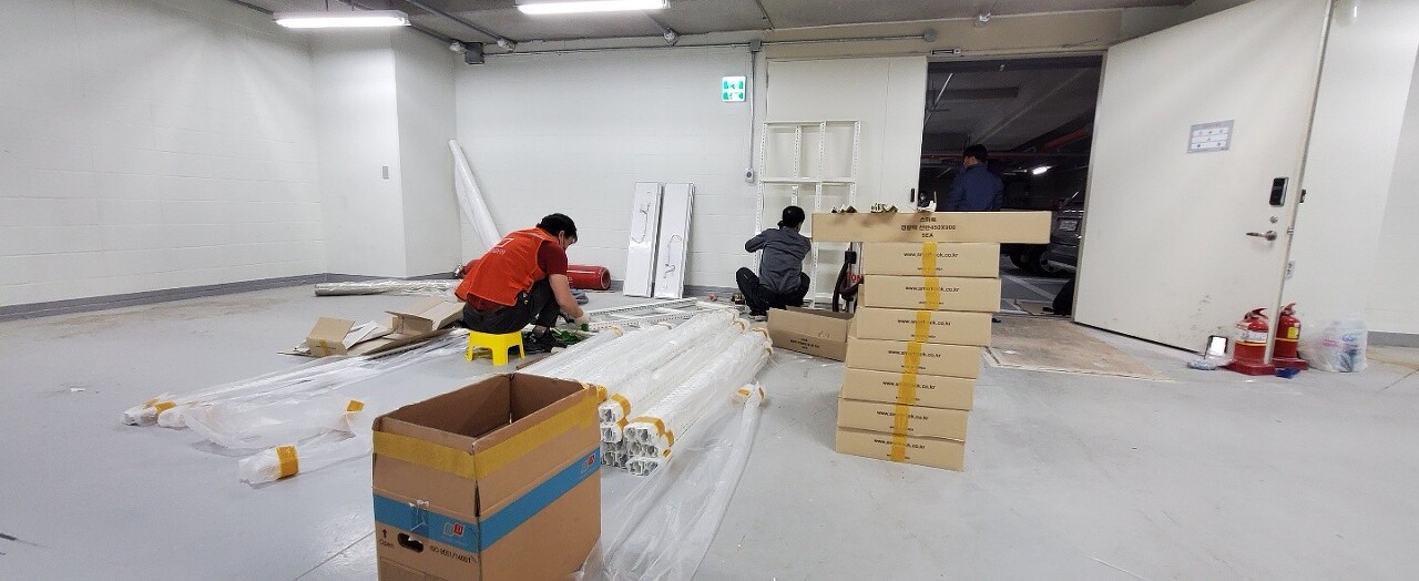 경량랙 설치 작업을 이미 진행하고 있었습니다.