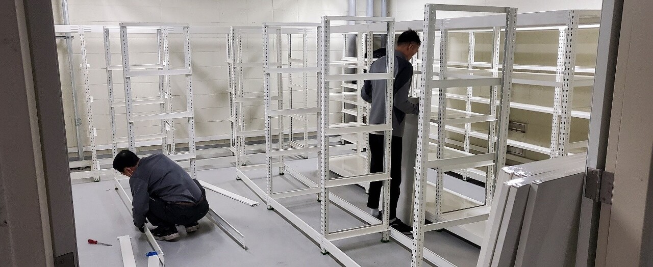 6층에 이어 7층도 경량랙들이 하나둘 세워졌어요.