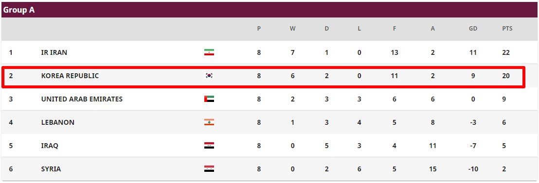 대한민국 축구 대표팀은 A조에서 6승 2무 무패 승점 20점으로 이란에 이어 조 2위를 달리고 있는데 이번 경기를 승리로 장식한다면 조 1위로 올라설 수 있는 상황입니다.