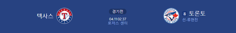 토론토 블루제이스의 제3선발로 출발하는 코리안 몬스터 류현진 선수가 11일 텍사스 레인저스와 홈경기에 선발 출전합니다. 올해 토론토 선발진은 메이저리그 전체 1위라는 평가를 받긴 했지만, 비록 개막전에서 승리하긴 했지만, 류현진을 제치고 토론토의 개막전 선발로 나선 호세 베리우스가 1회를 버티지 못하고 4피 안타(1 피홈런) 2 볼넷 4 실점의 실망스러운 투구로 기대를 저버렸습니다.