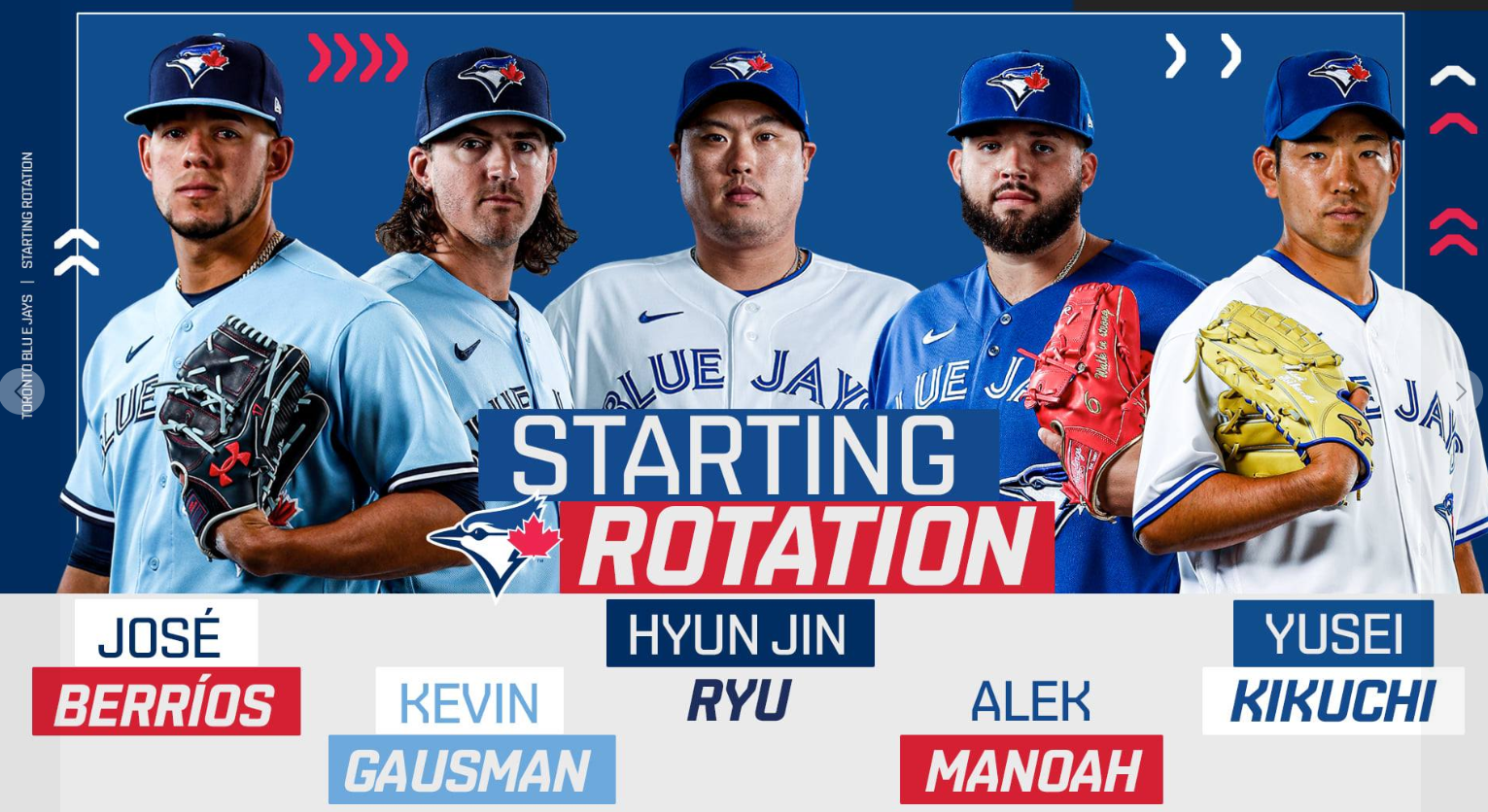 토론토 블루제이스가 SNS룰 통해 올해 메이저리그에 출전할 5인 로테이션을 공식 발표했다.토론토 구단이 7일(한국시간) 구단 SNS로 로테이션 순번을 알렸는데 1선발 호세 베리오스를 시작으로 케
