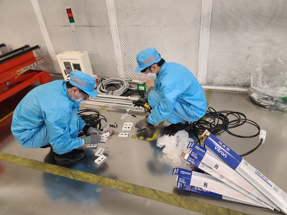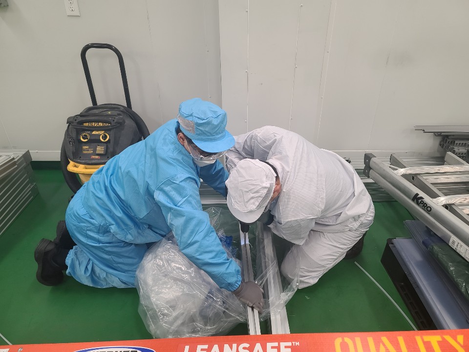 다소 어려웠던 부분은 프레임 고정과 FFU 설치 과정에서 천장부가 일반 타일이 아니라서 타공에 어려움이 있었습니다. 하지만 대상프로파일시스템의 오랜 경험과 노하우로 가볍게 극복할 수 있었답니다. ㅎㅎ