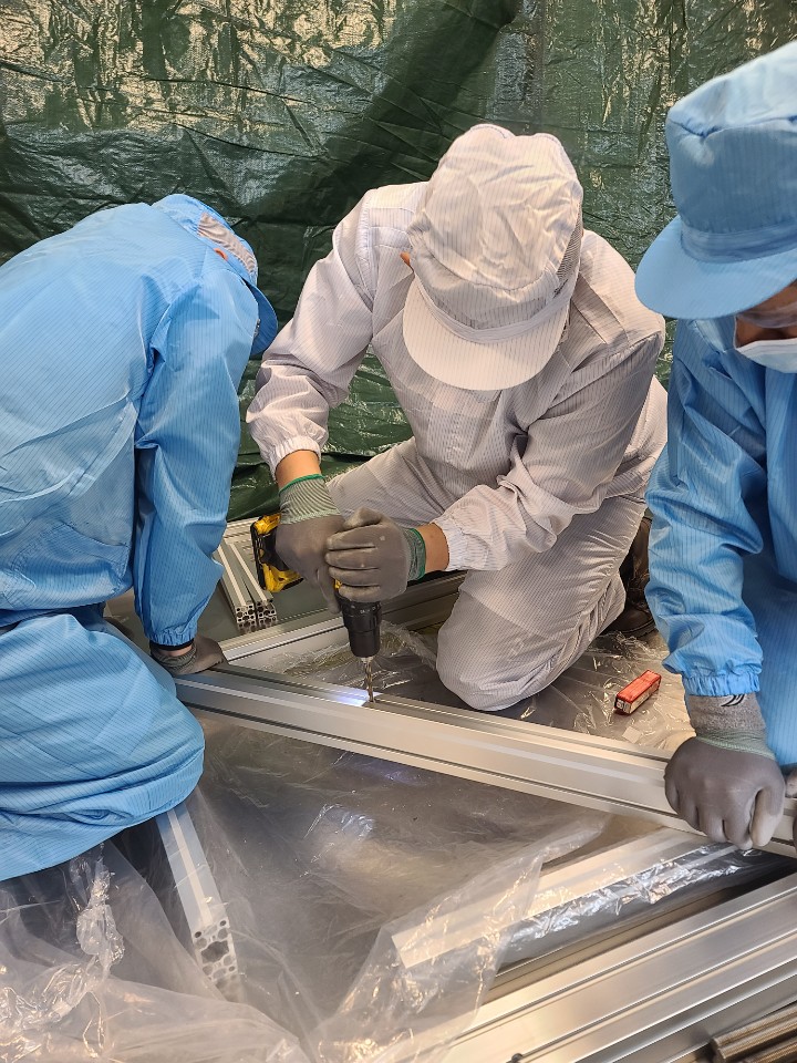 바로 방진복으로 환복한 후 작업 전에 현장분들과 제작에 대한 협의를 진행하였습니다.