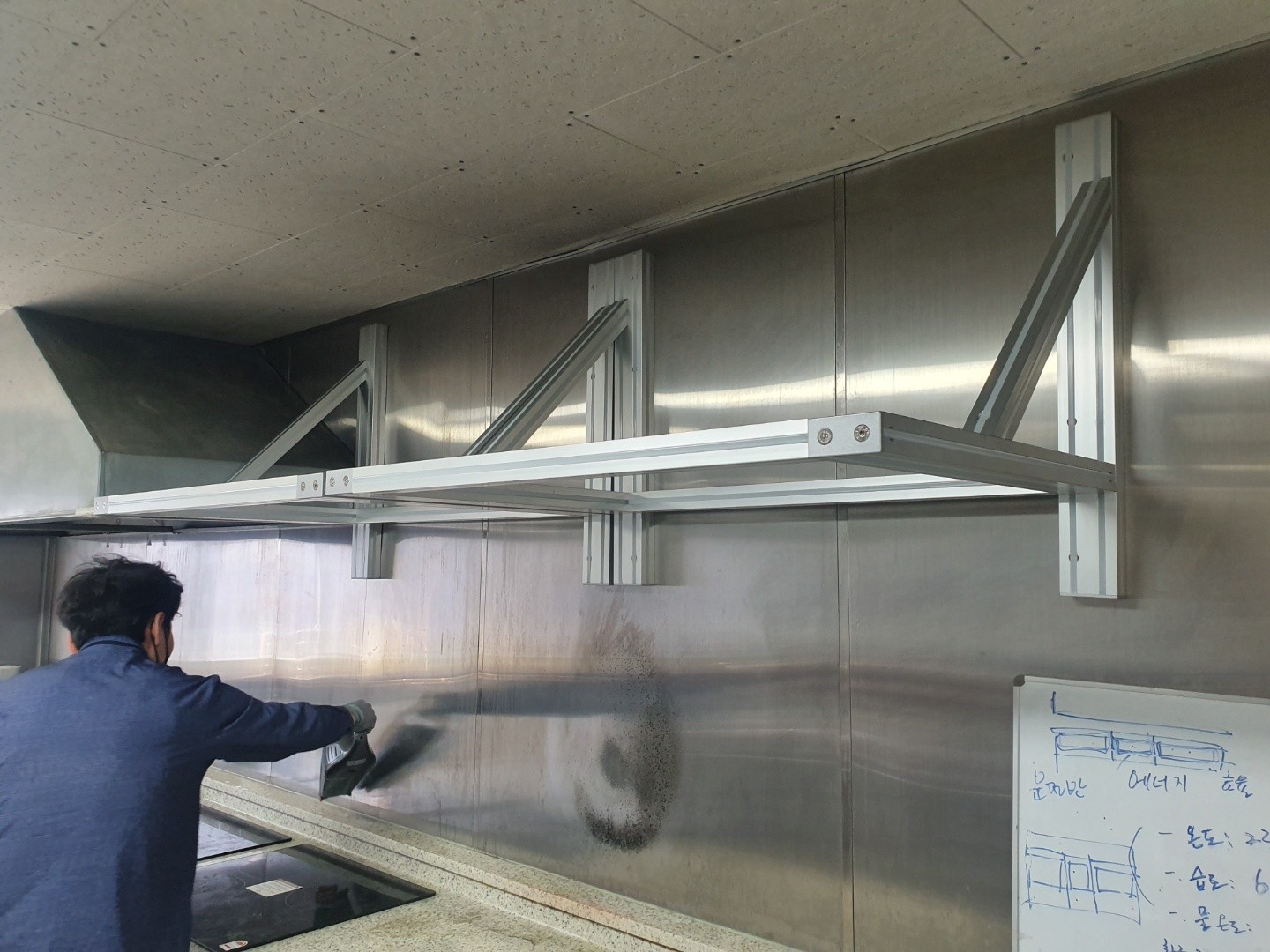 아침 일찍 시작된 환풍기 거치대 설치 작업은