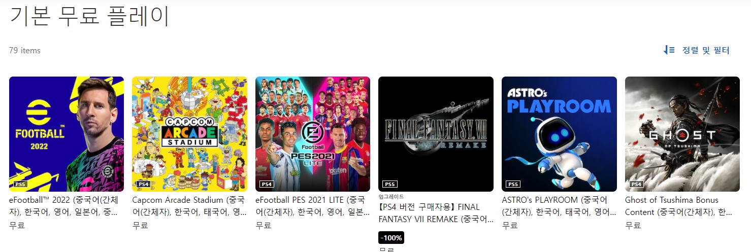 소니 PS스토어 이달의 기본 무료 플레이 eFootball 2022