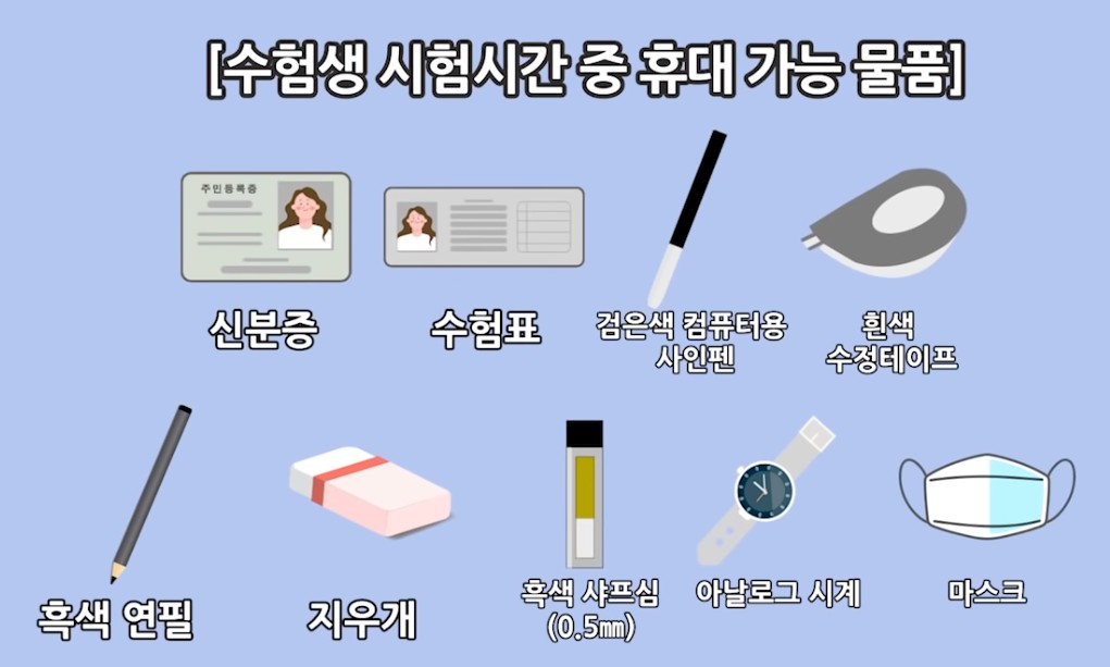 만약 시험 중 위 반입금지 제품을 소지하다가 적발되면 퇴실조치당할 수도 있는 만큼 반드시 유의하시기 바랍니다.