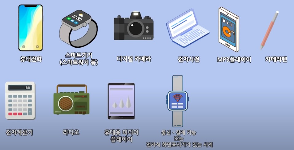 휴대전화, 스마트기기, 카메라, 전자사전, 계산기, 라디오 등은 반입이 금지되오니 이점 반드시 유의하시기 바랍니다.