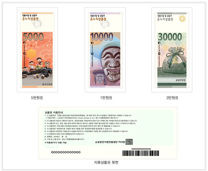 온누리 상품권은 전통시장, 상점가의 상권 활성화구역의 활성화를 위해 제작된 상품권으로 2009년도부터 발행되었습니다. 상품권은 지류상품권, 카드형 전자 상품권, 모바일 온누리 상품권 3가지로 구분됩니다.