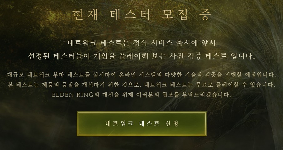 네트워크 테스트 신청은 엘든링 홈페이지(https://eldenring.bn-ent.net/kr/)에서 신청 가능