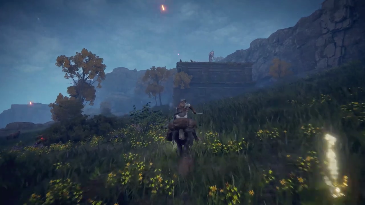 주인공은 말을 타고 소환되는 말을 별도의 탑승 조작 없이 자연스럽게 타고 이동 가능하고, 공중에서 한 번 더 뛰어오르는 점프 모션을 가지고 있어 장애물이나 높은 장소로 쉽게 이동이 가능하다. 특히 말을 타고 고룡과 사투를 벌이는 전투신은 몬헌 시리즈와 다크소울 3와 유사하지만, 탈것을 타고 타격하는 부분과 여러 가지 무기와 마법을 사용하는 공격 등 타격감과 디테일 면에서는 이들을 뛰어넘는 것으로 보입니다.