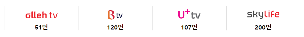 IP TV를 시청하시는 분들은 통신사 별로 번호가 다르기 때문에 참고하시면 좋을 것 같고, 딜라이브나 지역 케이블을 이용하시는 분들은 아래 서비스별 번호를 확인해 보세요.