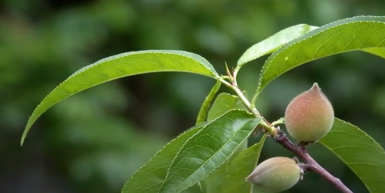 복숭아 잎 달인 물 : 지성 비듬에 효과적