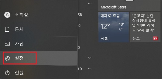 윈도우 시작 버튼을 누른 후 설정에 들어가 줍니다.