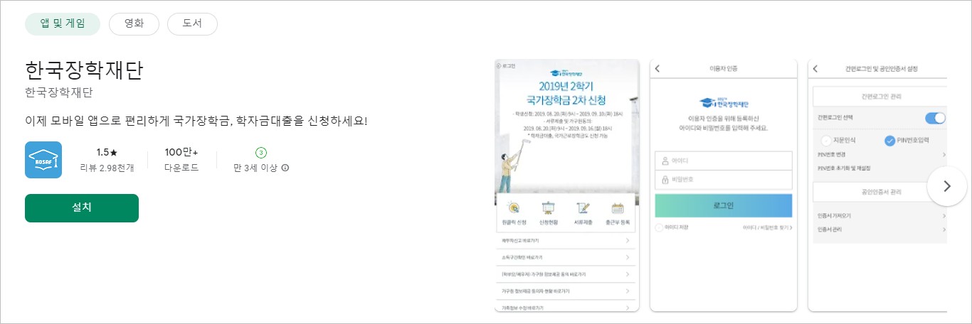 1. '한국장학재단' 모바일 어플 다운로드 후 전자서명 로그인
