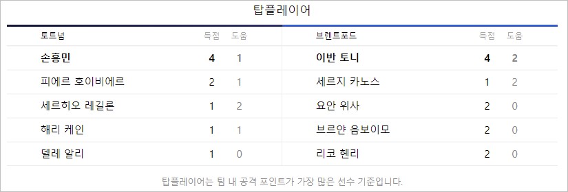 토트넘은 공격의 핵으로 불리는 해리 케인이 리그 1골로 부진한 상황이지만, 손흥민 선수가 리그 4골로 리그 득점랭킹 15위를 달리고 습니다.