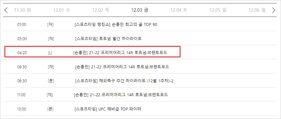 | 손흥민 경기 생중계 EPL 무료 중계방송 (0) | 2021.12.05 |