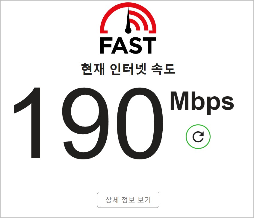 넷플릭스에서 운영하고 있는 인터넷 속도측정 사이트 패스트입니다. 넷플릭스 서버를 사용하고 있어서 안정적으로 서비스 중인데 회원 가입할 필요 없이 해당 사이트에 접속하면 바로 인터넷 속도 측정을 할 수 있습니다.