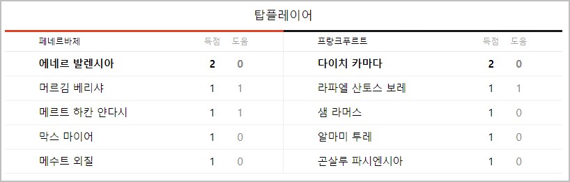 페네르바체와 프랑크푸르트는 지난 9월 17일 유로파리그 1차전에서 외질과 라머스가 나란히 1골씩을 주고받아 1:1로 비긴 전적이 있습니다. 초반에는 페네르바체가 공격을 주도했지만, 후반으로 갈수록 흐름은 프랑크푸르트 쪽으로 흘렀는데 다행히 김민재 선수의 안정적인 수비력과 골키퍼의 선방으로 가까스로 비겼습니다.