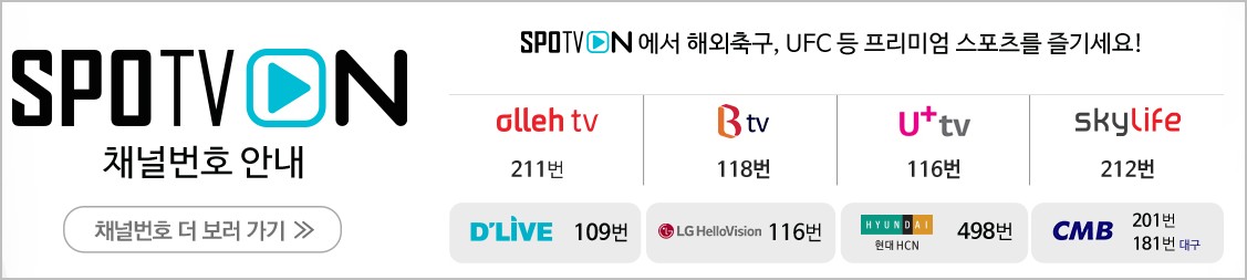 스포티비온 각 통신사나 지역 케이블에 따라 채널 번호가 다르기 때문에 채널표를 참고하시기 바랍니다.