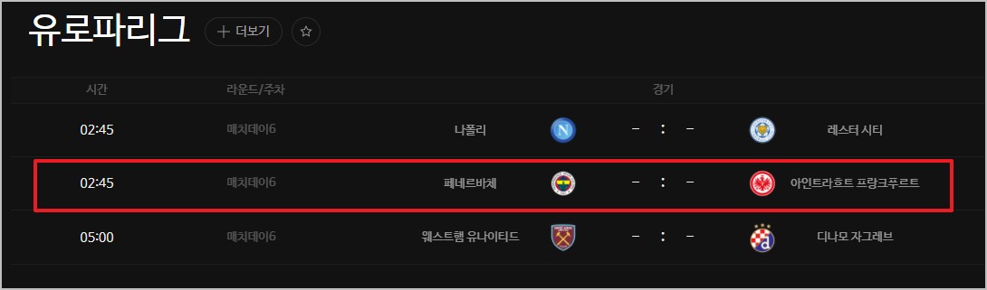 유로파리그에서 3승 2무로 조 1위를 달리고 있는 프랑크푸르트 역시 16강 진출을 거의 확정 상태이기 때문에 무리해서 전력을 다하지 않을 것으로 예상되지만, 보레와 파시엔시아 등 주전들의 고른 활약이 예상됩니다.
