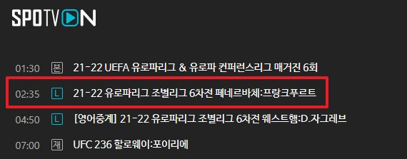 | 손흥민 경기 생중계 EPL 무료 중계방송 (0) | 2021.12.05 |
